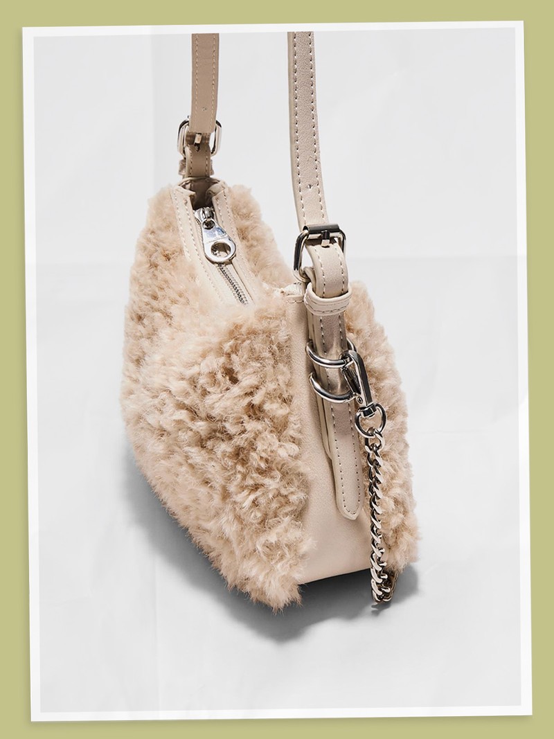 Faux Fur Moon Shoulder Bag With Chain, £19.99 | Stradivarius