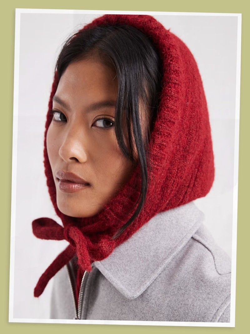 Knitted hoods are a having a moment and this colourful take is an easy way to freshen up your cold-weather layers.