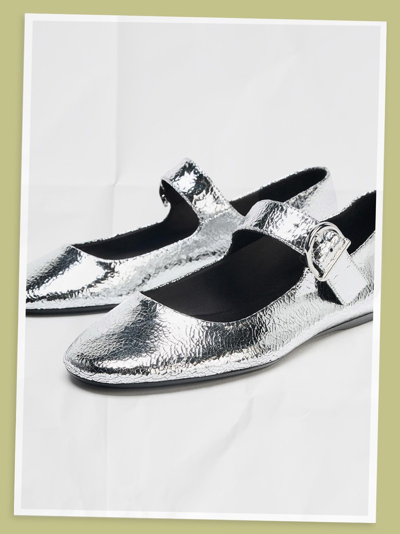 Metallic Leather-Effect Ballerinas, £49.99 | Zara