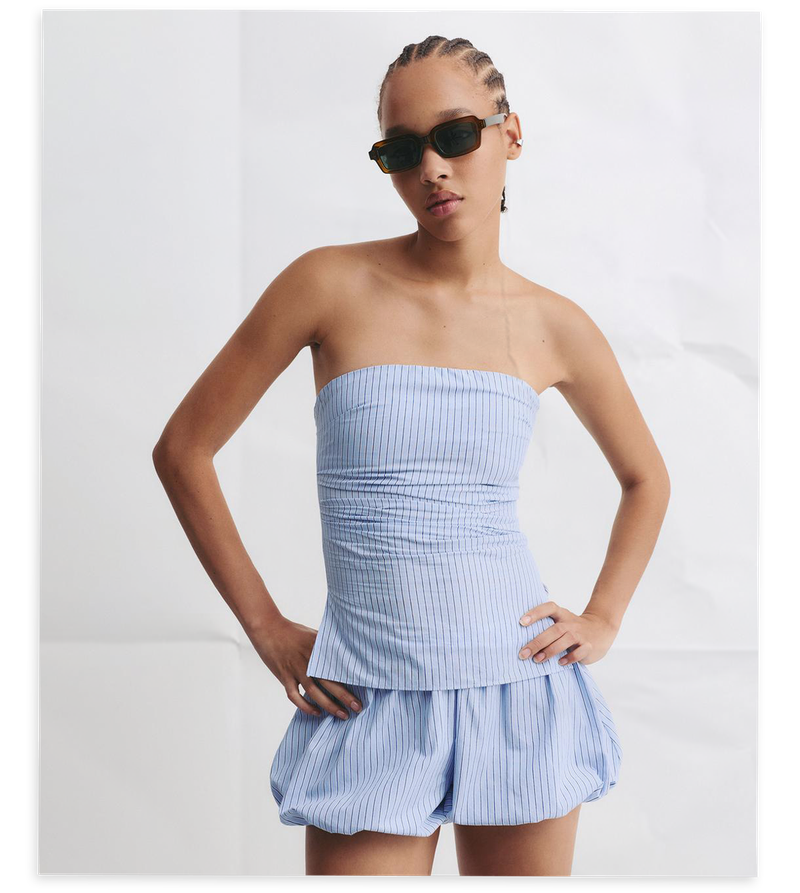 A fun way to tap into the bubble hem trend, these shorts are as polished as they are playful – especially when paired with the matching top. Add a chunky sandal for day and a heel at night.