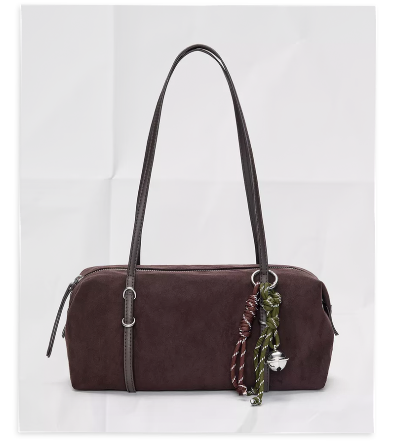 Brown suede bags are still trending, and we love how Pull & Bear has added playful bag charms to this one.
