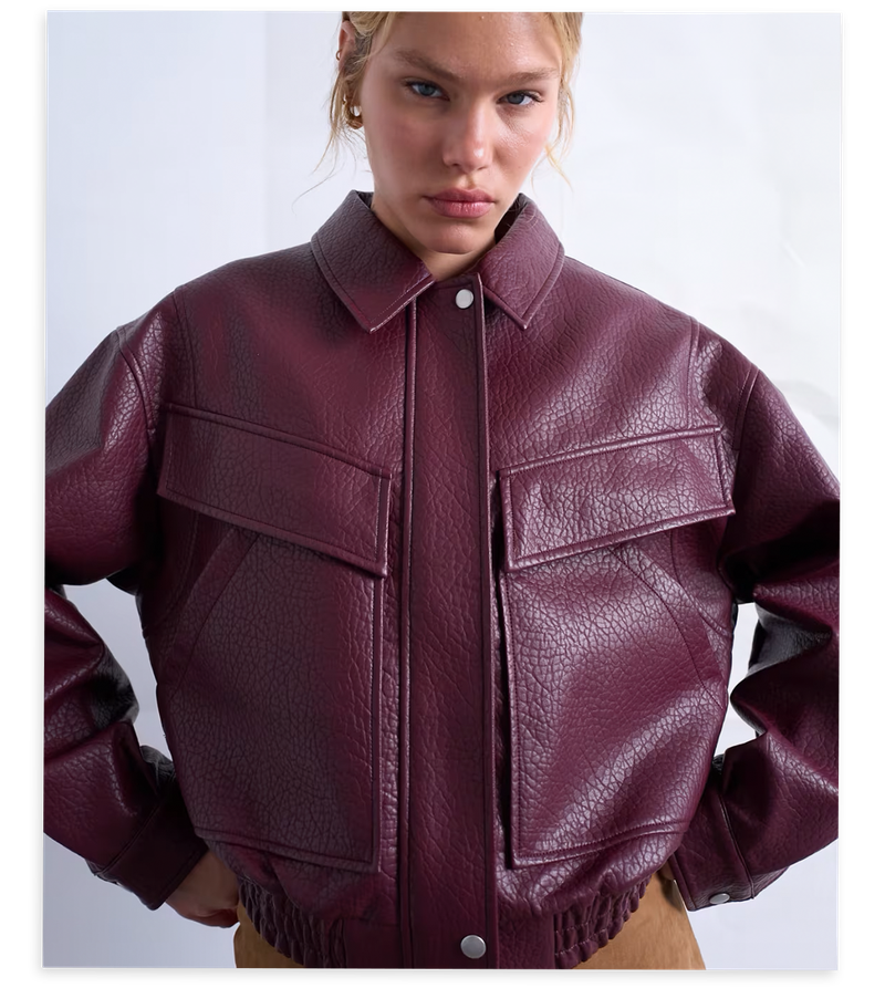 Faux Leather Bubble Boxy Zip Through Bomber Jacket