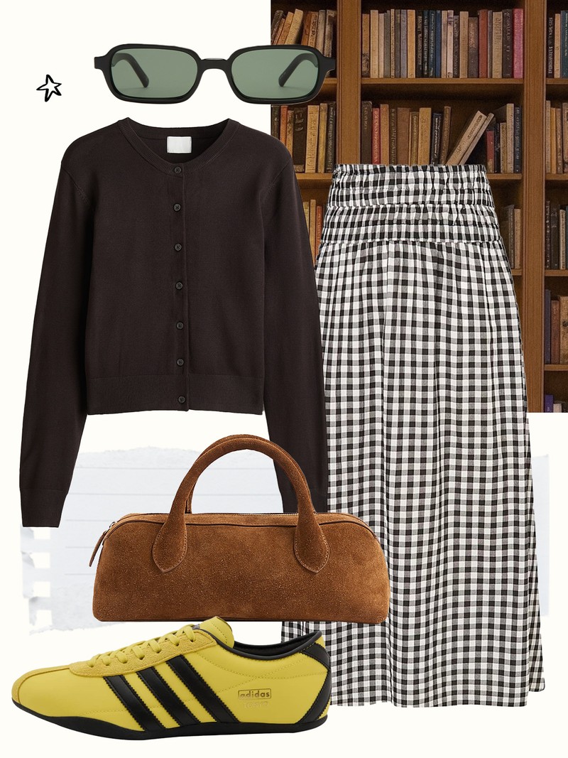 We’re loving gingham right now. Pair this skirt with a soft cardigan to lean into the feminine look, then add some fun trainers for a playful twist.