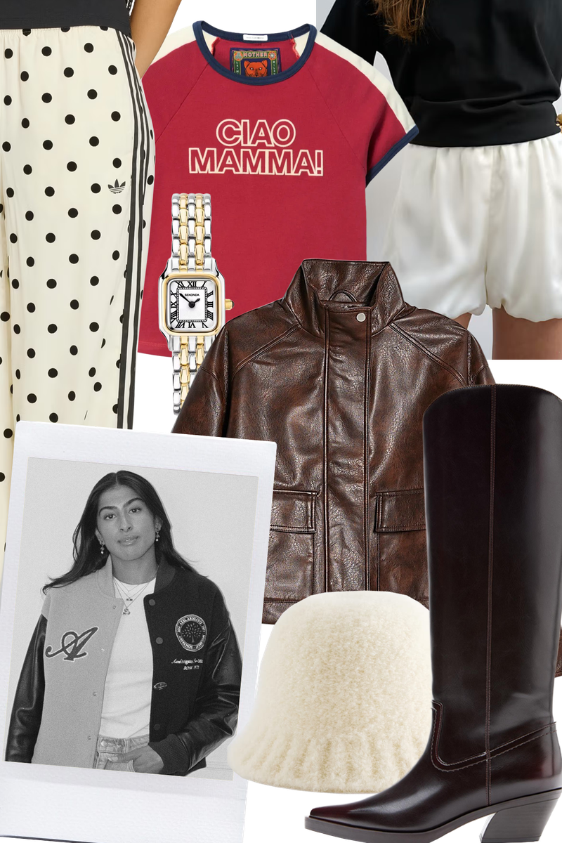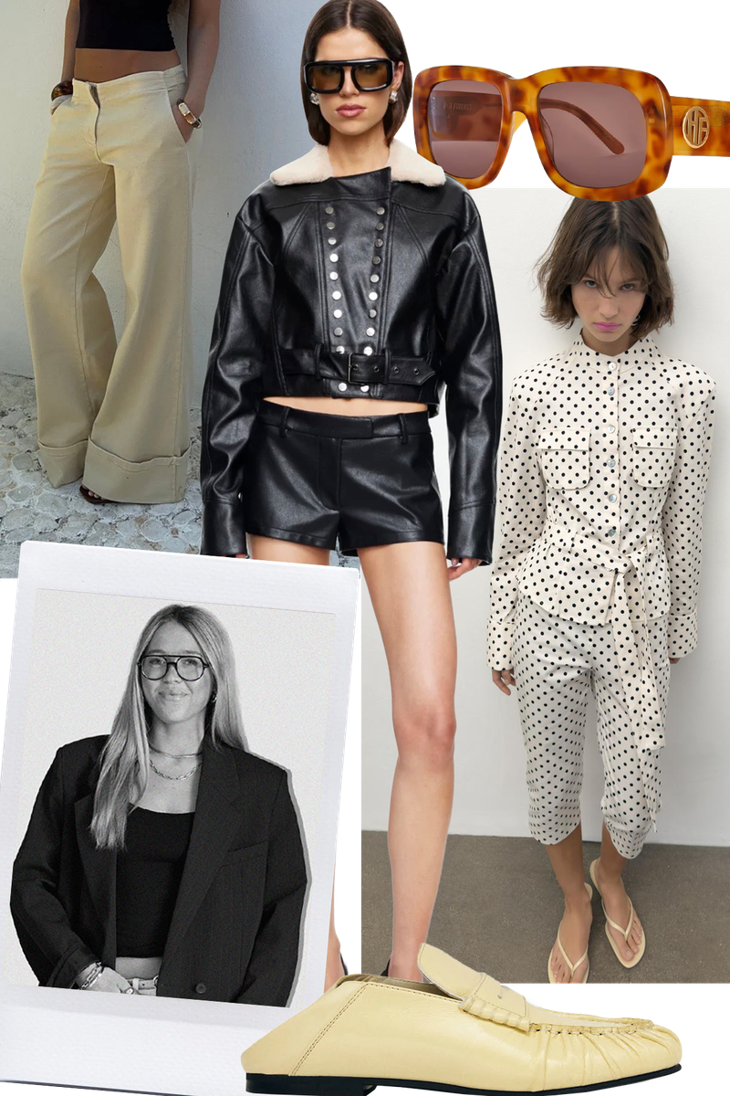 Spring is when my wardrobe starts to feel lighter, fresher, and a little more playful. Starting with outerwear, this cropped leather bomber from Lioness channels a military vibe in a cooler, more modern way, while Zara’s polka dot set would add a subtle utilitarian edge. I’m also obsessed with Danish brand Design By Si and its yellow oversized jeans – the turned-up hem is an easy way to add a flash of colour to your look. For shoes, these butter yellow mules from Alohas are great.