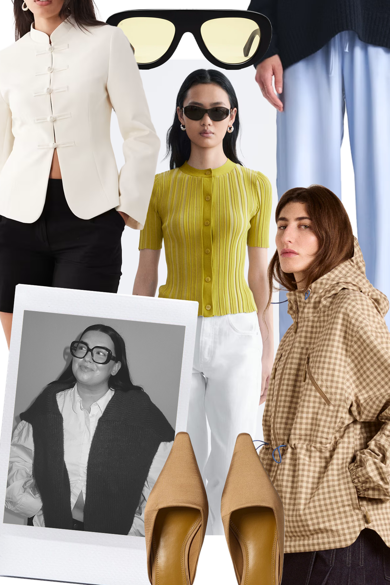 Spring is here and I am keen to switch out the heavy layers for some lighter transitional pieces – the colour and material of this & Other Stories plissé top make it perfect for spring, plus the details on the buttons and shorter sleeves add such a fun touch. I’ve had my eye on Mandarin-style jackets for a while and the crisp white colour of this ASOS jacket would sharpen up any outfit, especially with these NA-KD squared kitten heels. From bag charms to sunglasses, I am always on the look-out for statement accessories. This Madewell bag charm is fun and colourful, and these Jimmy Fairly glasses have that oversized, effortless look. Finally, you can’t go wrong with a lightweight jacket and Damson Madder always has a great range of outerwear – this gingham cinched-waist number would make a great addition.