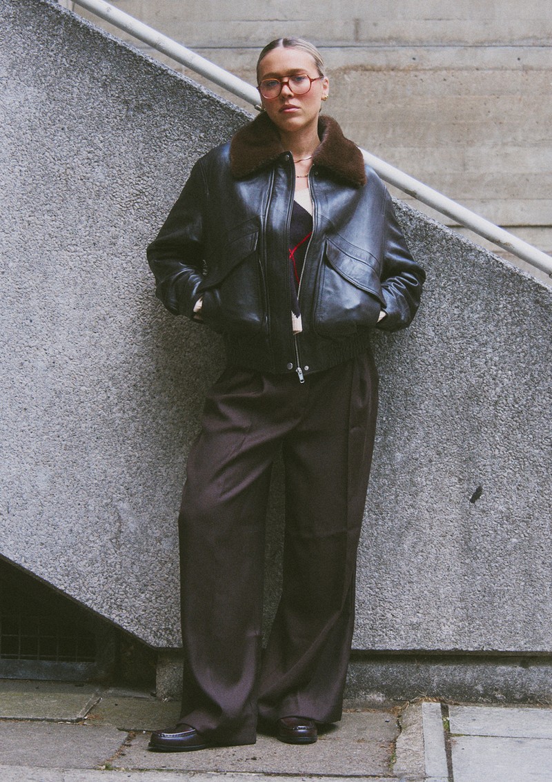This is the bomber you’ll regret sleeping on. Oversized and with a shearling collar, it’s a hero piece. Keep things tonal with tailored trousers or throw it on over denim and a tee at the weekend.