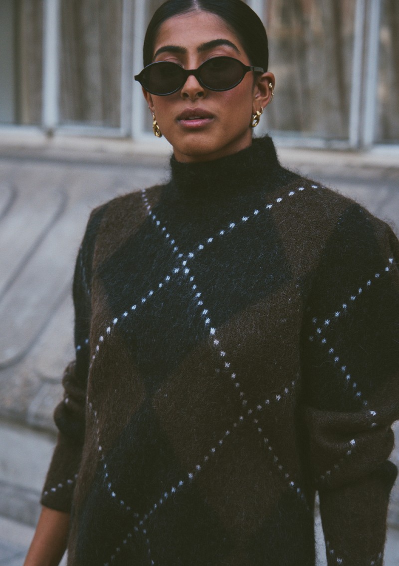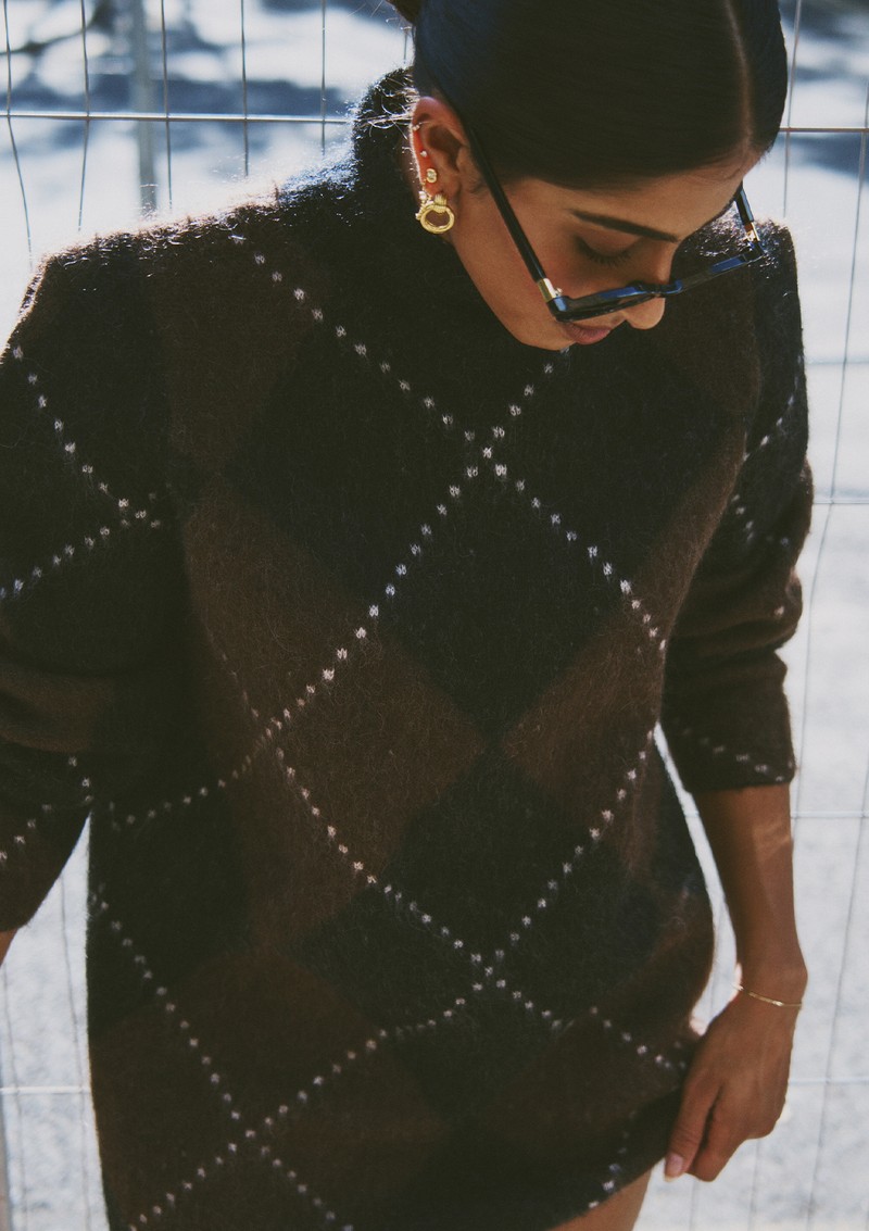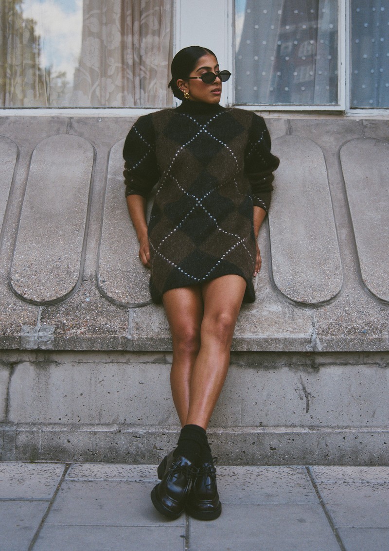 An argyle knit is the easiest way to add some colour and pattern to your autumn wardrobe. Style it as a sweater dress with chunky loafers or layer it over trousers for something more office appropriate.