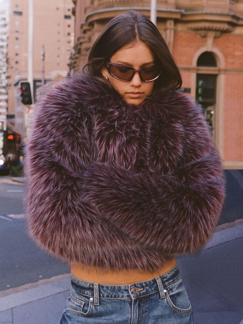 The outerwear is on point and nails all the trends – from shaggy coats and fur trims to faux leather bombers.