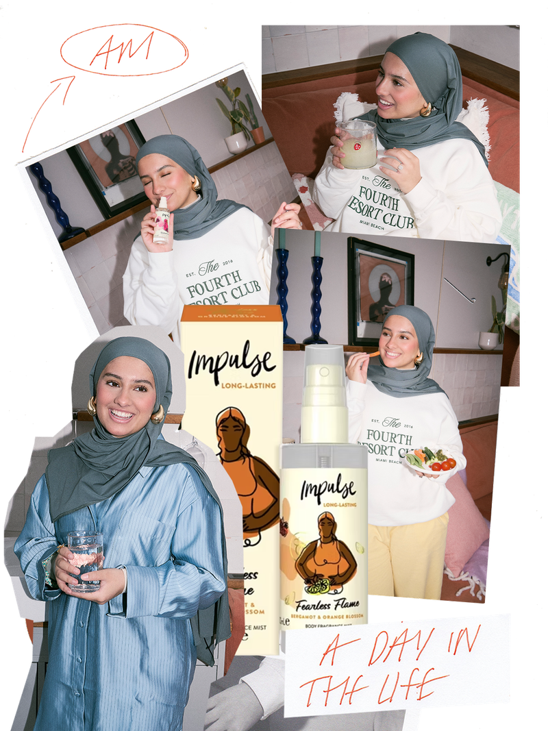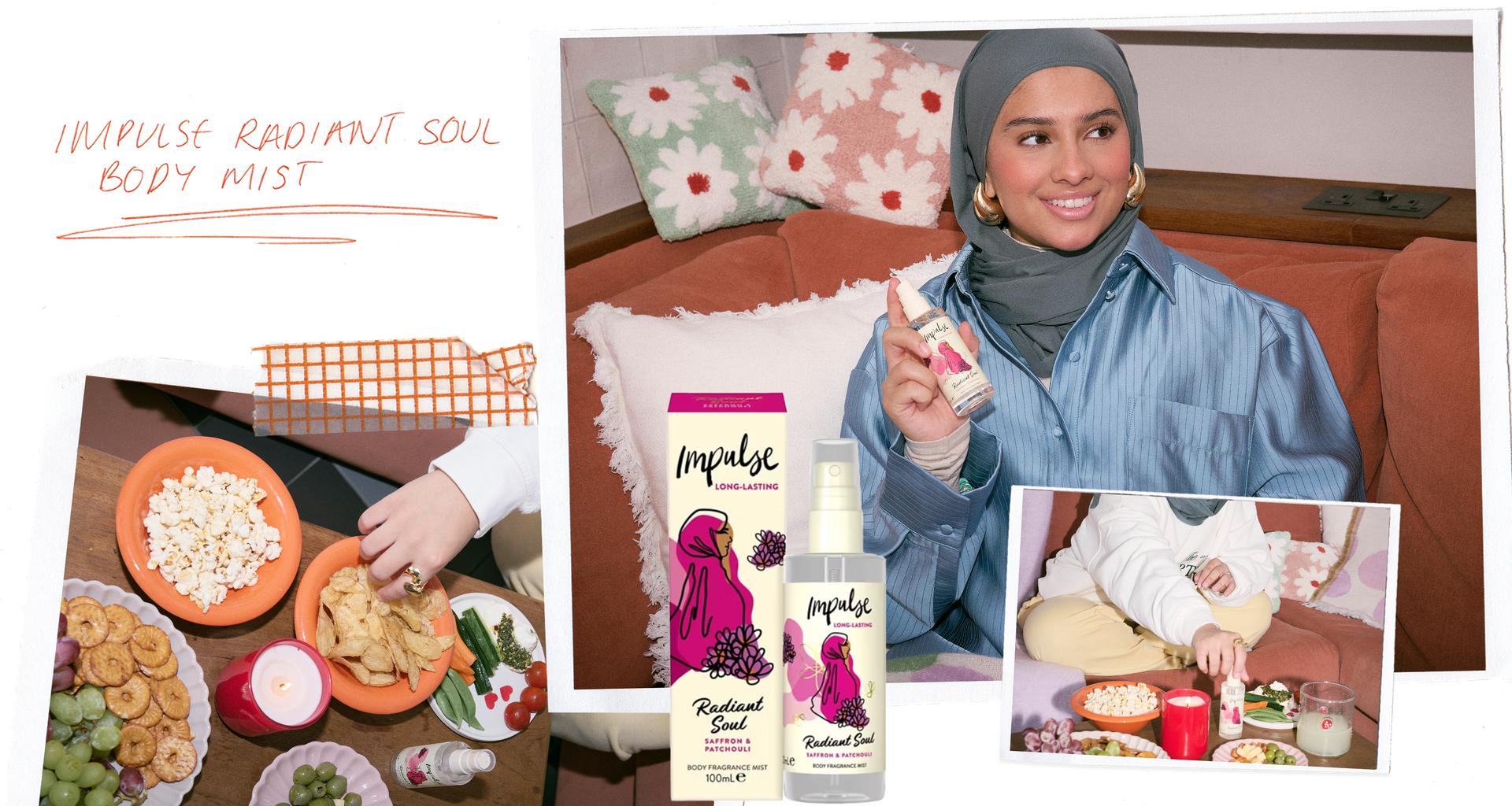 When I need a mood or energy boost, I rely scents that invigorate me and leave me feeling fresh and revitalised. My Impulse Radiant Soul Body Mist has become a go-to for me. Elsewhere, taking care of my body both through my skin, and my presentation, are very important to me. That’s why acts like tying my hijab at home are very empowering – they’re proof of the care I have for myself.