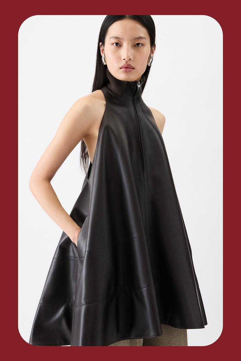 With its slick finish and clean-cut silhouette, this leather mini is understated but impactful. Just add barely-there heels and a bold lip for an evening out.
