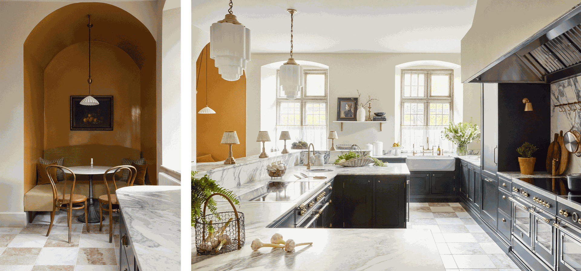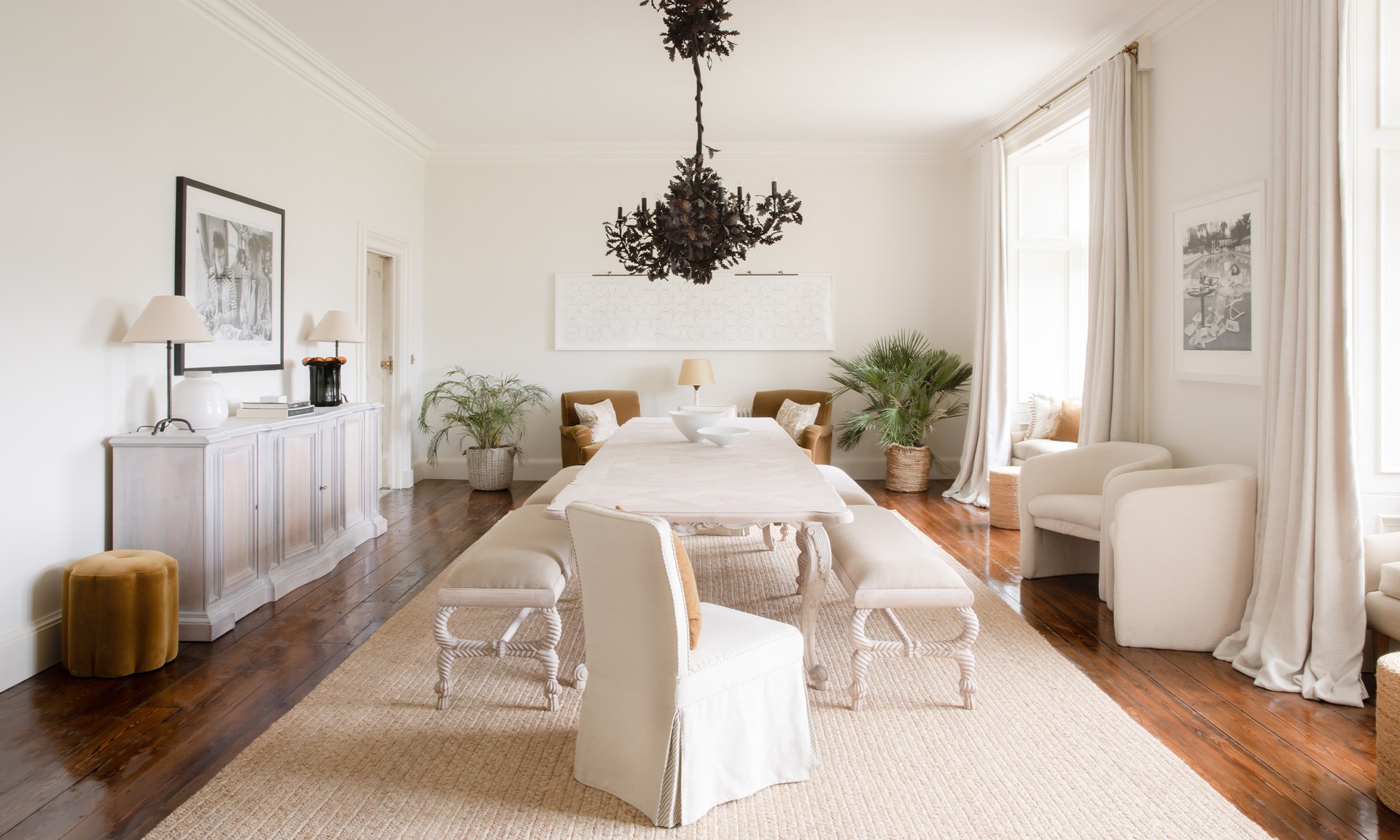 Langdon Court doesn’t have one particular style. All the rooms are deliberately quite different, each led very much by the space, its planned use, and the architectural details already present. We mixed classic and contemporary furniture and lighting, as it was important for us to respect the heritage of the house without it feeling stuffy or old-fashioned.