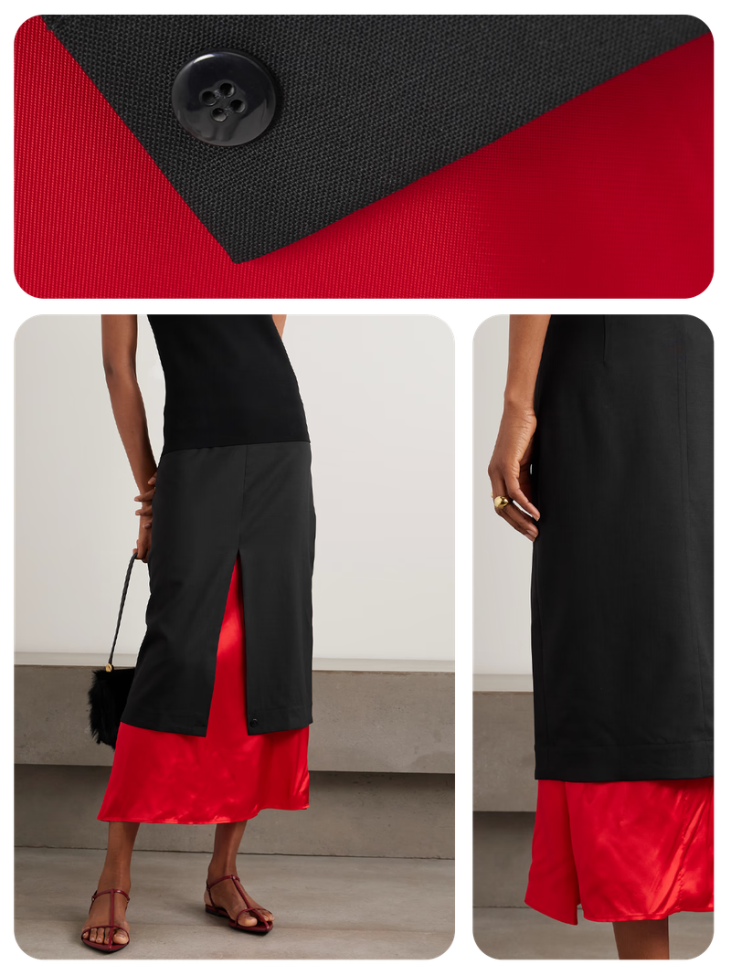 Layered Wool & Chiffon Midi Skirt