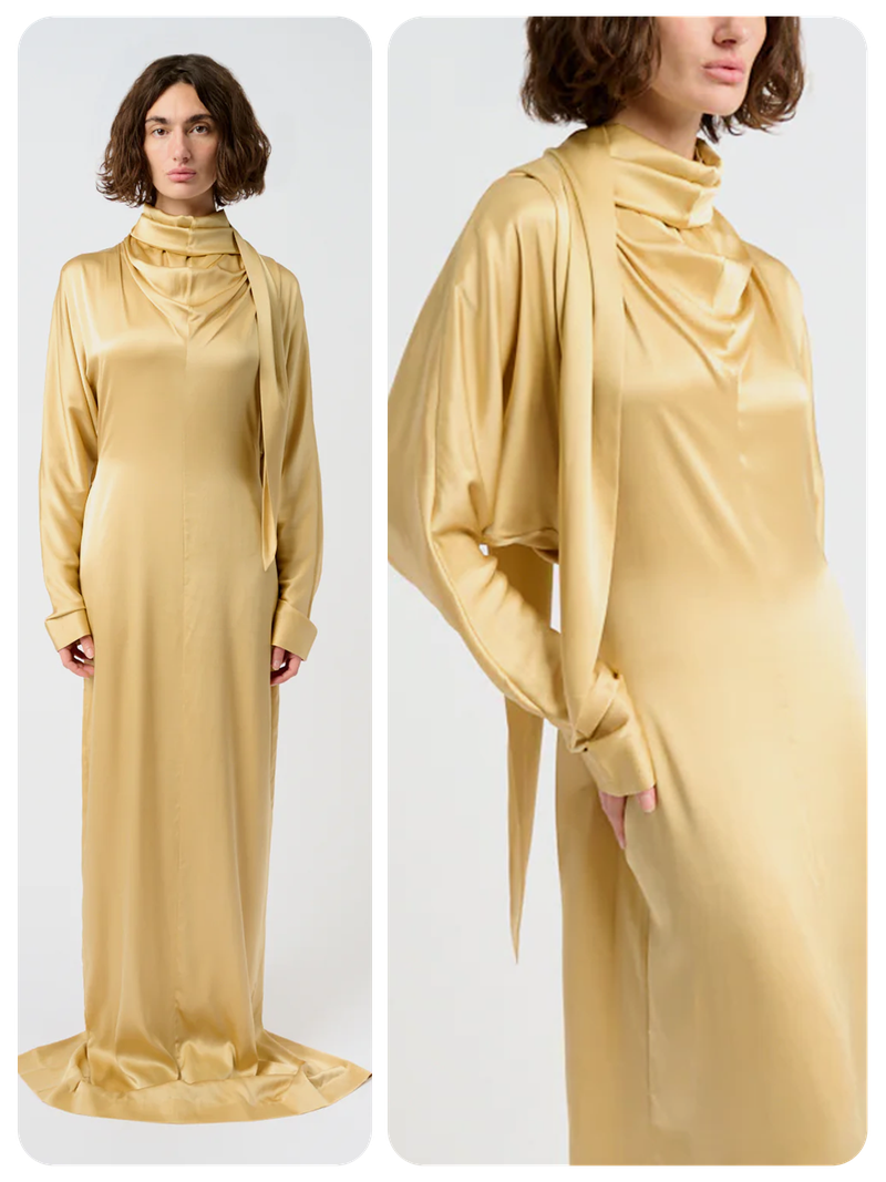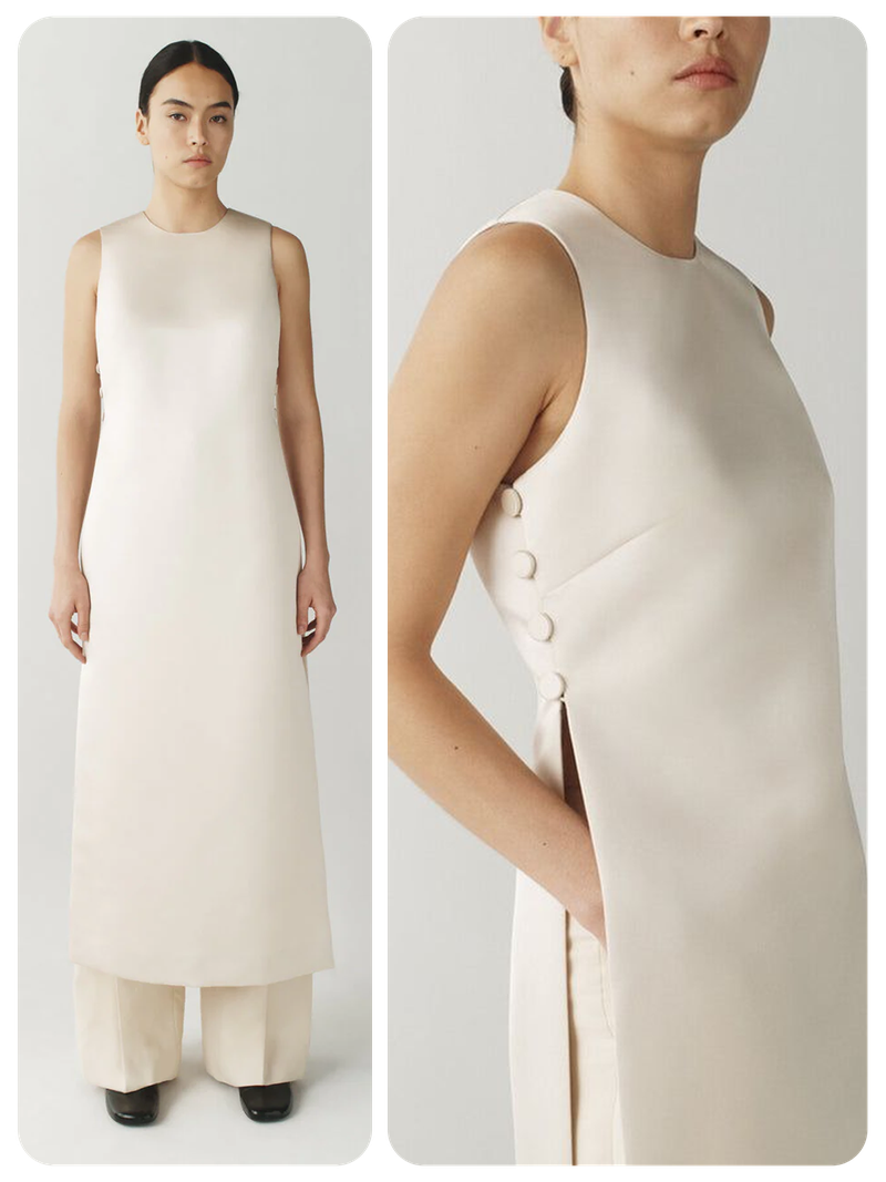 I’m such a fan of this brand and this look really stood out to me. The dress layered over the matching trousers, with the side split revealing just a hint of the underneath, feels like such a modern take on occasion dressing.